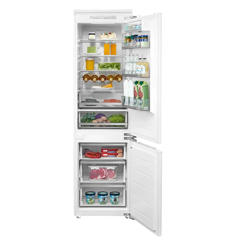 Вбудований двокамерний холодильник Fabiano FBFN 3122 — ідеальне рішення для сучасних кухонь. Завдяки технології Total No-Frost, іній та паморозь не утворюються, забезпечуючи рівномірне охолодження продуктів. Інверторний компресор гарантує тиху роботу (35 дБ) та економію енергії (клас A++). Зона свіжості FRESH COOLING ZONE та зона вологості MOISTURE ZONE подовжують свіжість м’яса, риби, овочів і фруктів. Виготовлено в Туреччині з німецькими посиленими завісами.