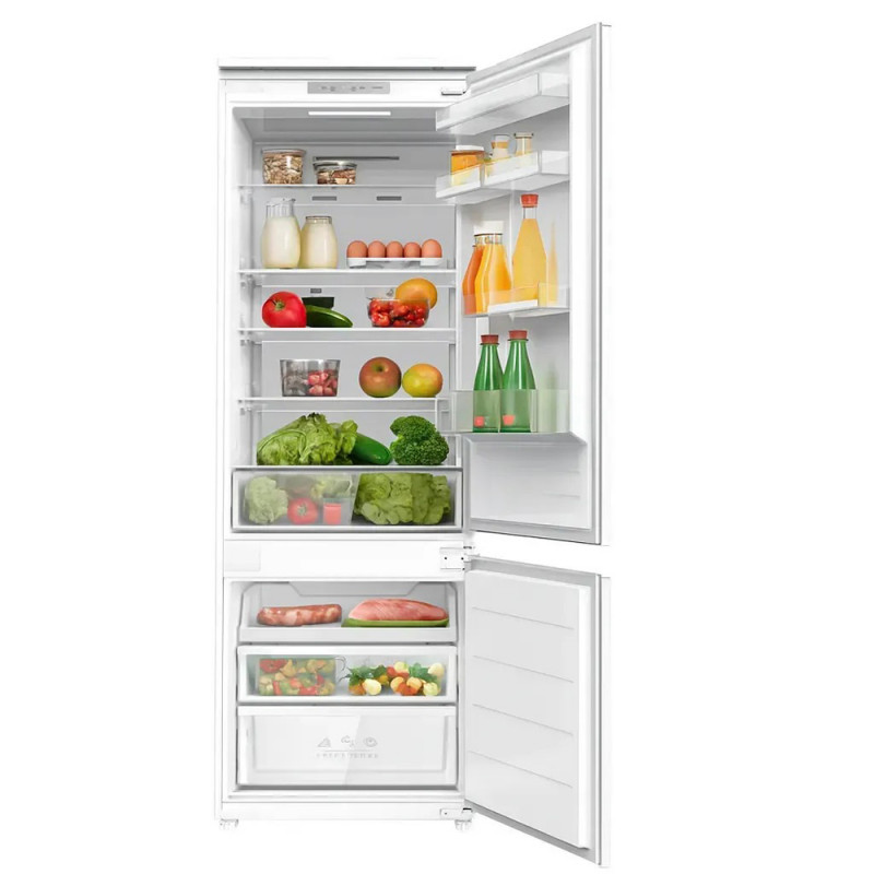 Вбудований двокамерний холодильник Fabiano FBFN 4101 із інверторним компресором поєднує енергоефективність A++ та технологію Total No Frost для охолодження без паморозі. Зона MOISTURE ZONE підтримує оптимальну вологість для овочів і фруктів, зберігаючи їх свіжими довше. Полиці із загартованого скла та LED-освітлення забезпечують зручність і стиль. Ковзаючий монтаж фасадів гарантує ідеальну інтеграцію в кухонні меблі. Тиха робота (29 дБ) робить модель ідеальною для сучасних кухонь.