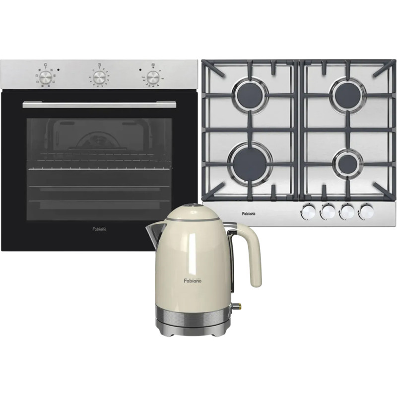 Газова варильна поверхня FHG 3744 VGH Inox із нержавіючої сталі (AISI304) і суцільними чавунними решітками традиційного дизайну. Фронтальне керування металевими ручками та автоматичний підпал забезпечують зручність і безпеку.