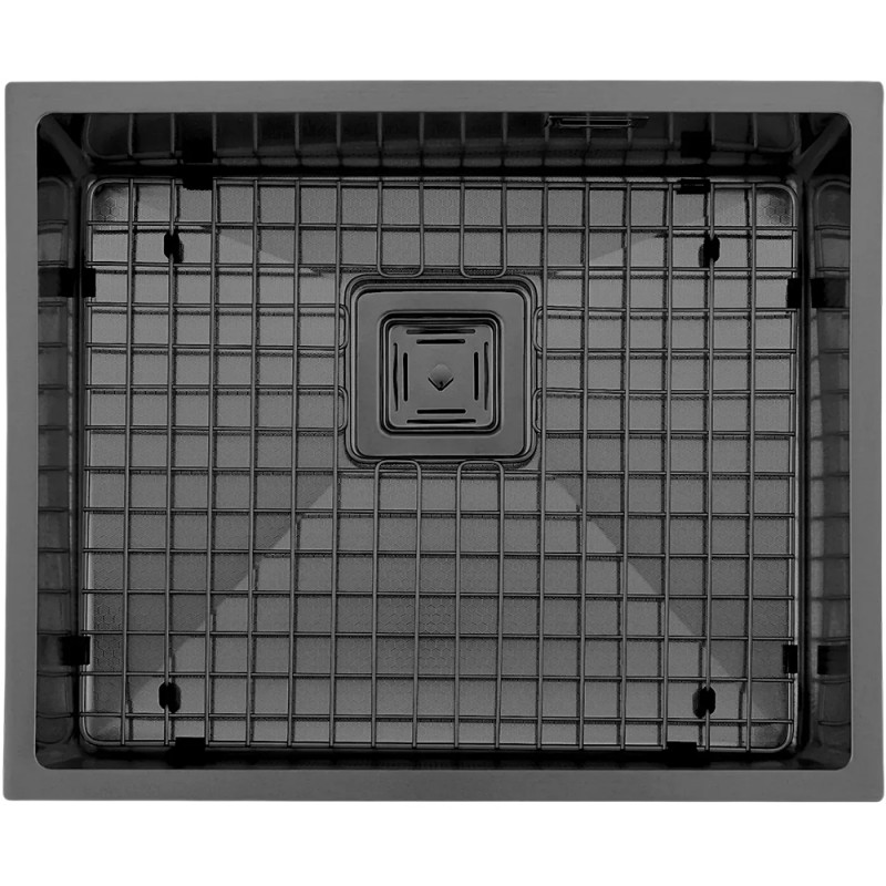 Поверхня металу декорована ексклюзивним візерунком у формі бджолиних сот з легким поліруванням, що надає мийці неперевершений преміальний вигляд та прекрасно гармонує з кольором змішувачів. Вигини стінок чаші виконані радіусним кутом 10 мм, що підкреслює преміальність і приналежність продукту до яскраво вираженого стилю High-Thech. А так же забезпечують додаткову зручність для догляду за мийкою і при митті посуду.