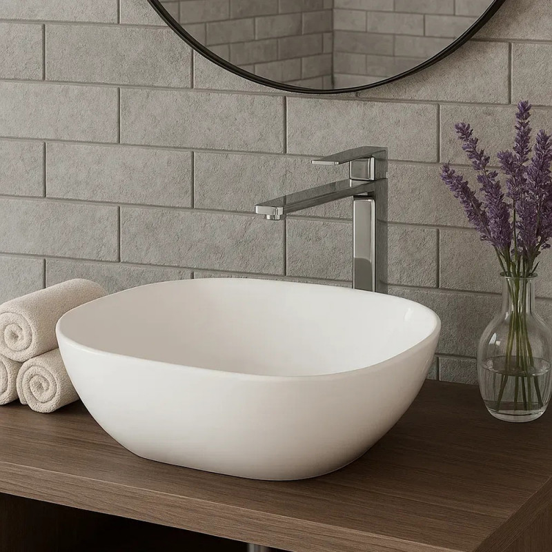 Накладний умивальник Laveo T410x410x150 – це сучасне рішення для ванних кімнат, що поєднує стиль і функціональність. Його квадратна форма з м’якими заокругленими лініями створює елегантний і лаконічний вигляд, ідеально вписуючись у мінімалістичні та затишні інтер’єри. Виготовлений із високоякісної кераміки, умивальник має глянцеву поверхню, стійку до подряпин, забруднень і впливу побутової хімії, що забезпечує легкий догляд і тривалу експлуатацію. Відсутність переливного отвору та донного клапана підкреслює чистий дизайн, додаючи моделі акуратності. Універсальна конструкція сумісна з настінними або врізними змішувачами, що робить умивальник ідеальним для різних стилів – від модерну до класики. Компактні розміри (41x41x15 см) оптимізують простір у ванній кімнаті.