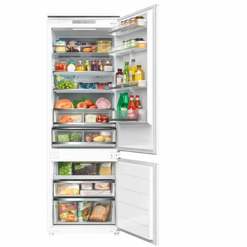 Total No Frost – це технологія охолодження, за якої в обох робочих камерах холодильника не утворюється іній та паморозь. Циркуляція охолоджувального повітря максимально рівномірна і подається чисельними отворами крізь задню стінку, завдяки цьому досягається більш якісне однородне охолоджування кожного продукта на кожній поличці.